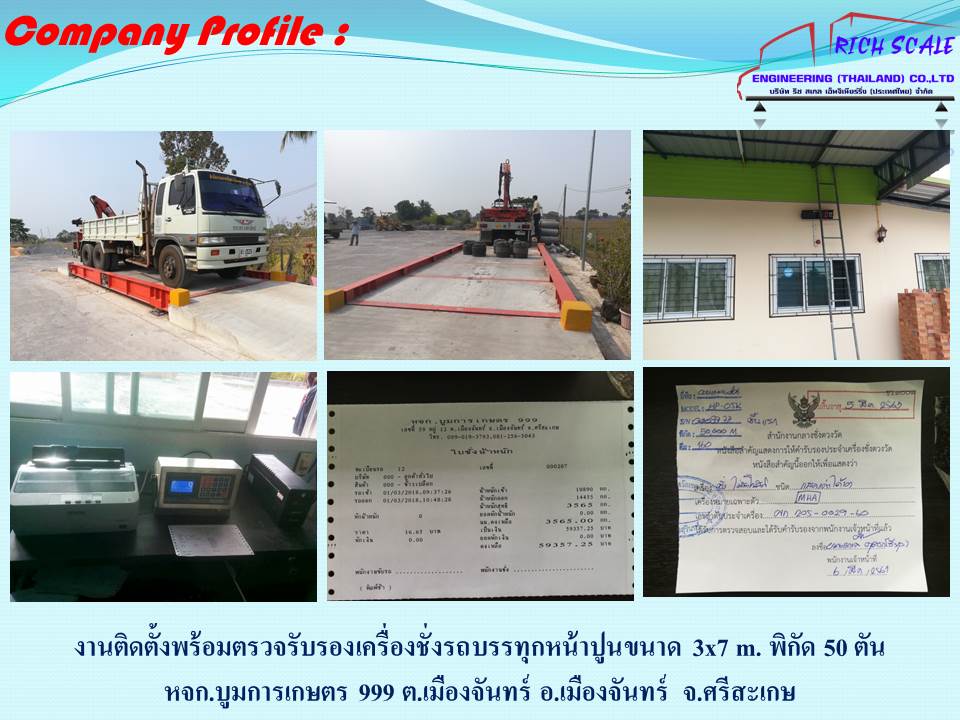 5. บริษัทเราเปิดดำเนินการมากว่า 10 ปี จดทะเบียนในเดือน มี.ค. 2552 ประสบการกว่า 10 ปีในการดำเนินงาน กับเครื่องชั่งรถบรรทุกทำให้เรามีช่างผู้ชำนาญงานรู้และ แก้ไขข้อบกพร่องต่างๆ อุปกรณ์ทุกชิ้นผ่านการตรวจรับรองจากกองชั่งตวงวัดทุกชิ้น ก่อนนำมาติดตั้ง และก่อนที่เครื่องจะถึงมือลูกค้า เพื่อให้ลูกค้ามั่นใจในมาตรฐานและใช้งานได้อย่างยาวนาน ไร้ปัญหาการซ่อมจุกจิกมากวนใจ